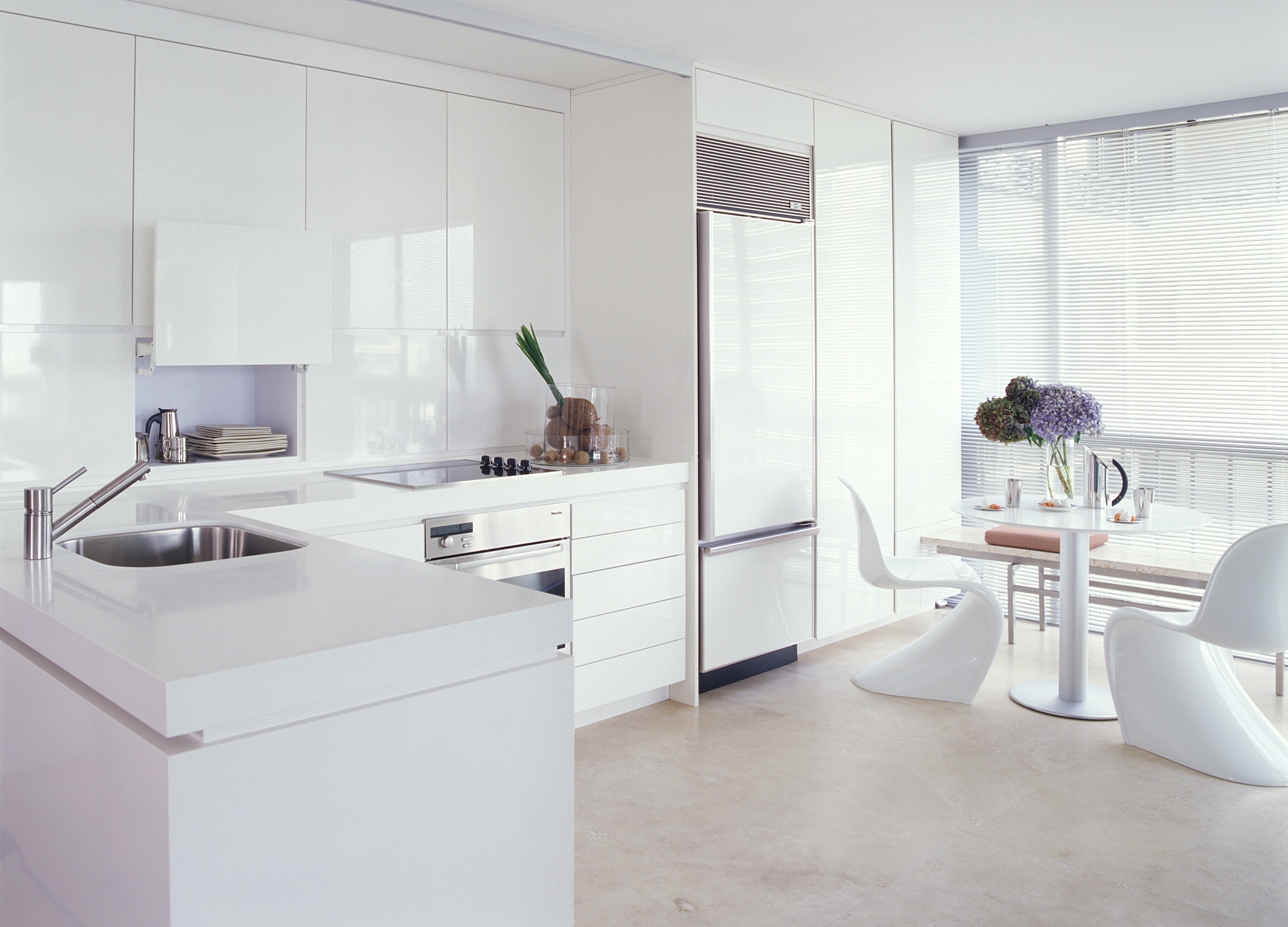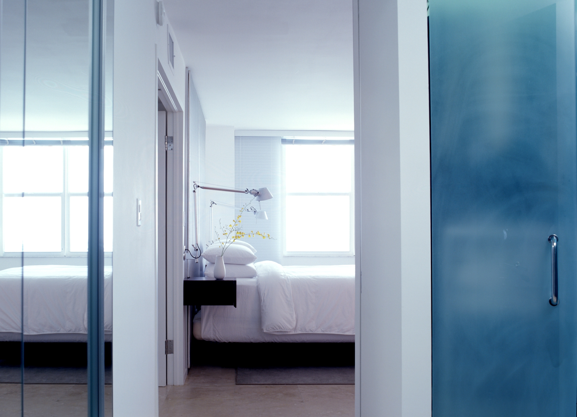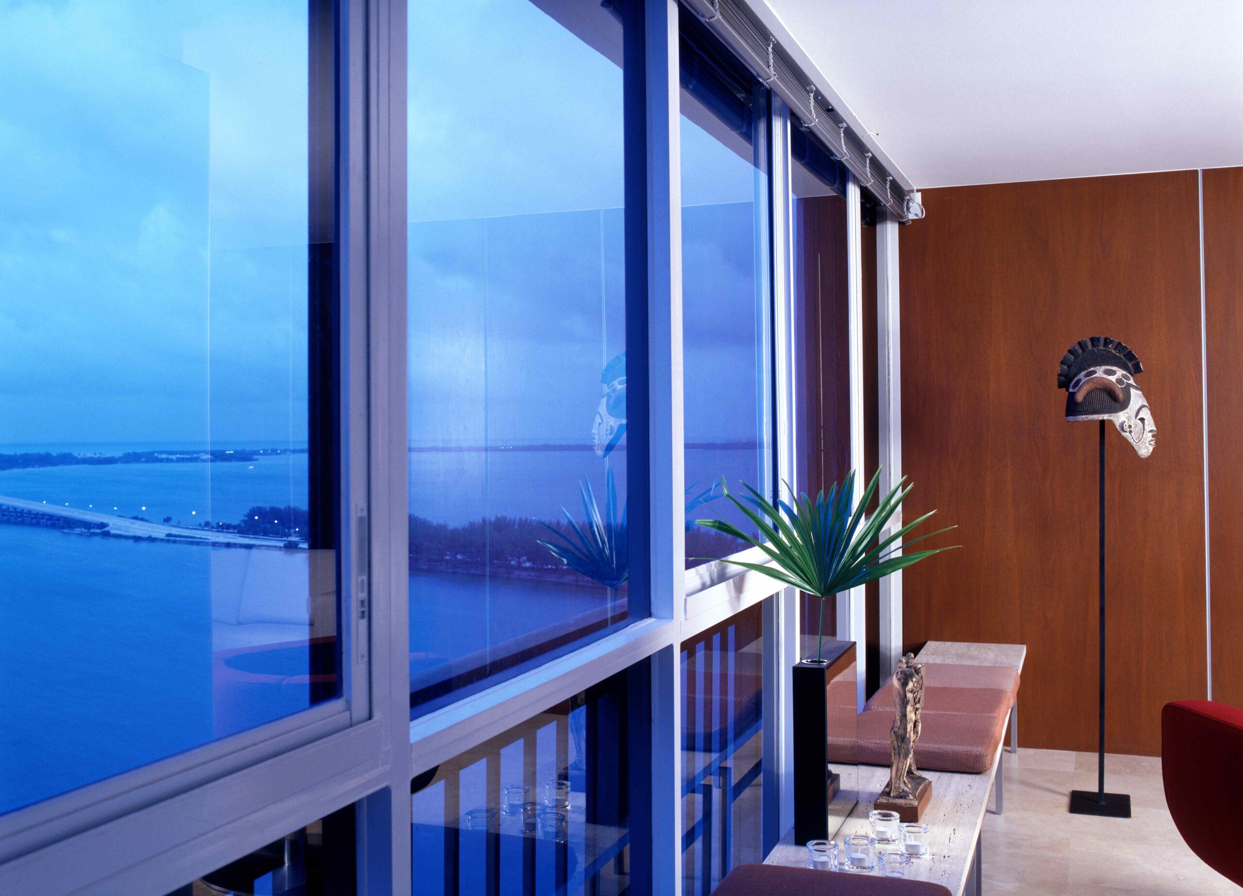 The Brickell Bay Club apartment has panoramic bay and city views of Key Biscayne and downtown Miami. These magnificent views are the stimulus for creating an open space that is oriented towards the water and sky.
