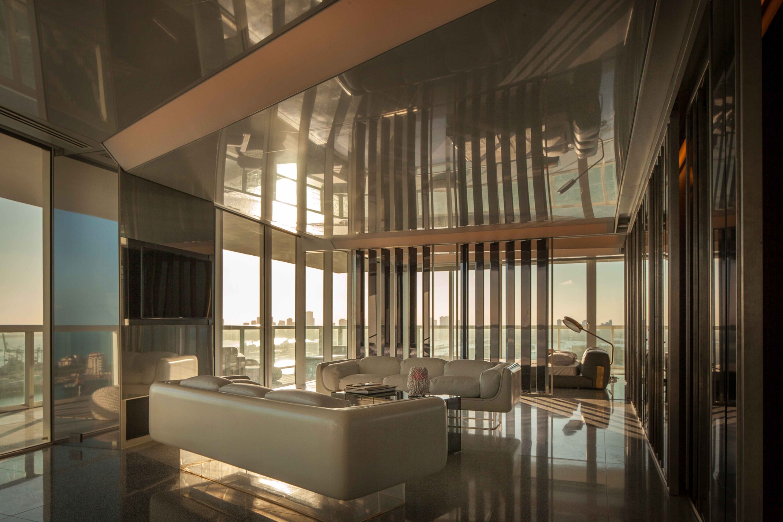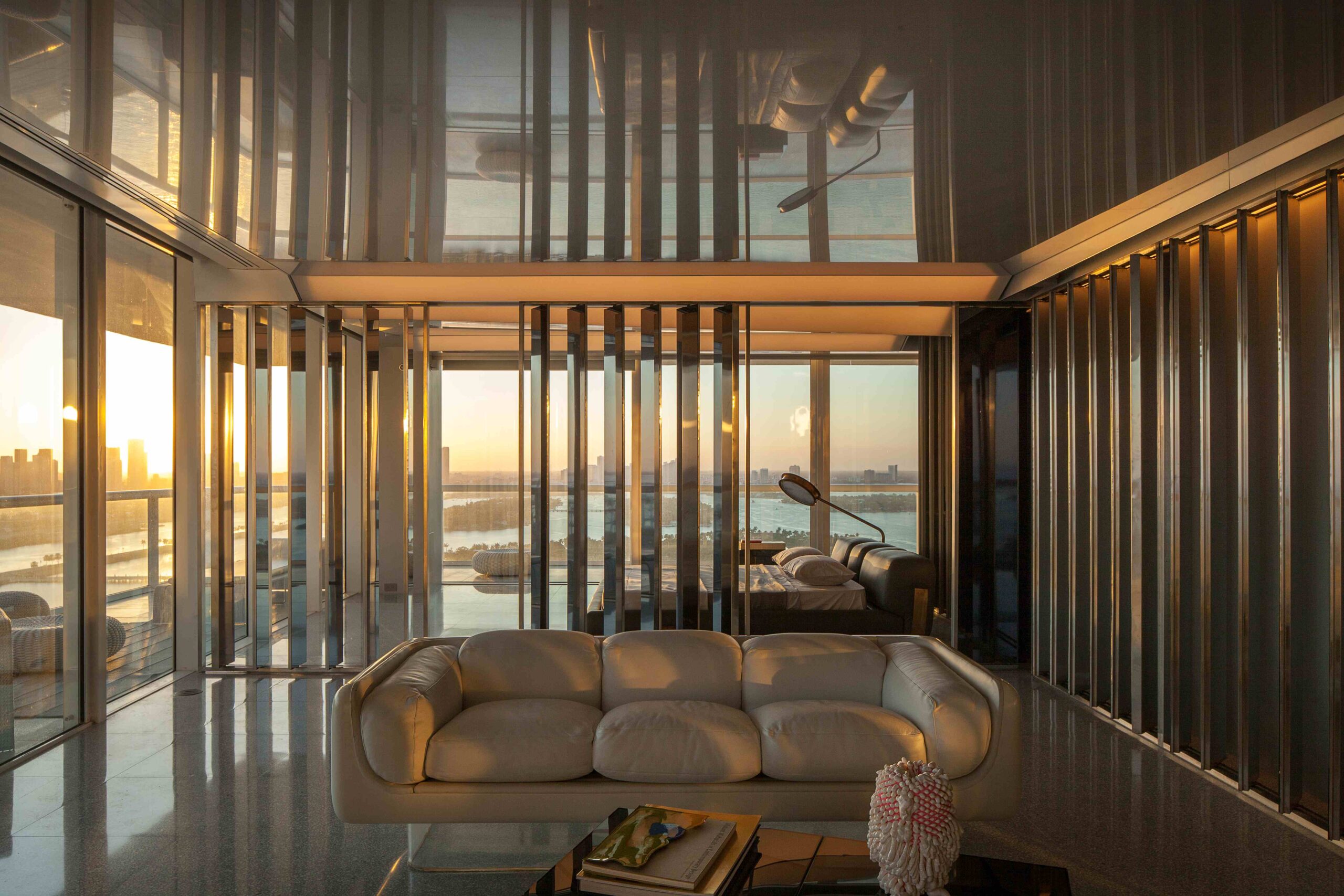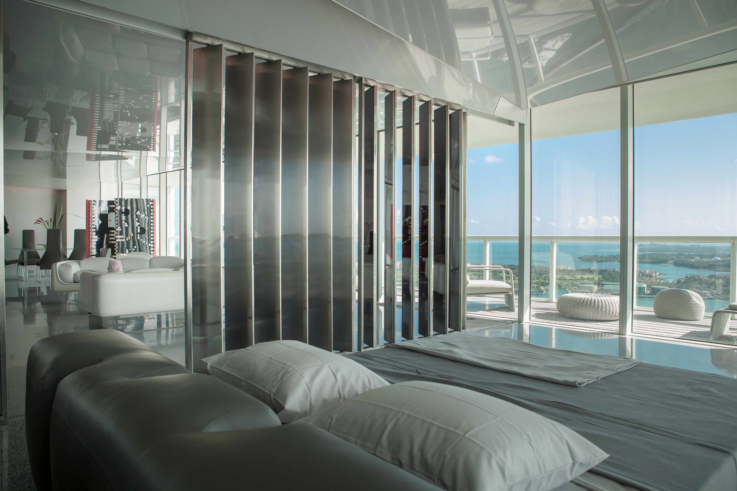 Located within South Beach, the Icon Residence subverts the typical apartment typology by introducing an architecture that dematerializes in order to open up the space to both embrace and reflect the apartment’s views and surroundings. The result is an intimate and symbiotic relationship between the interior space and the skyline, the Atlantic Ocean, and the string of islands that comprise Miami Beach and Biscayne Bay.