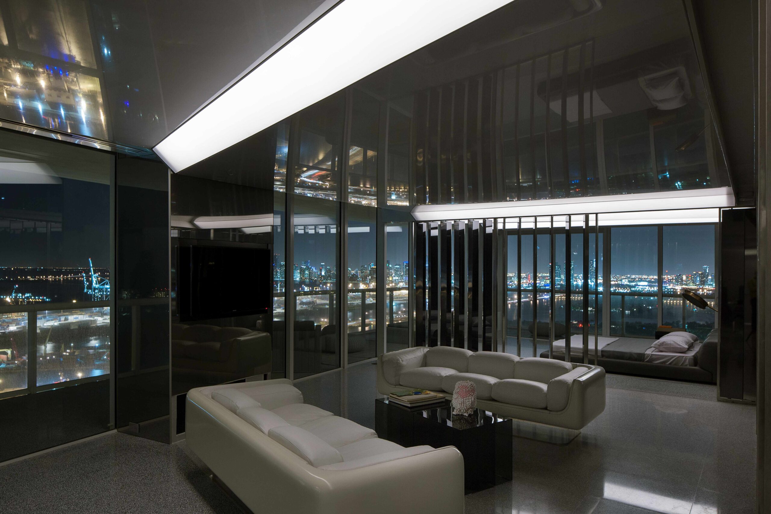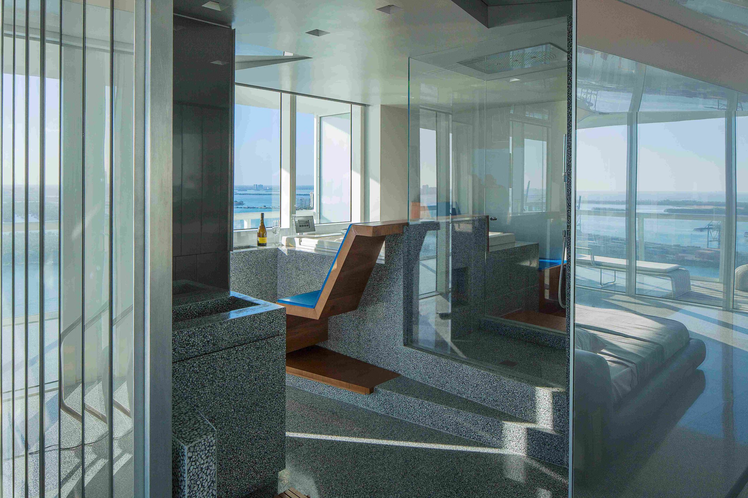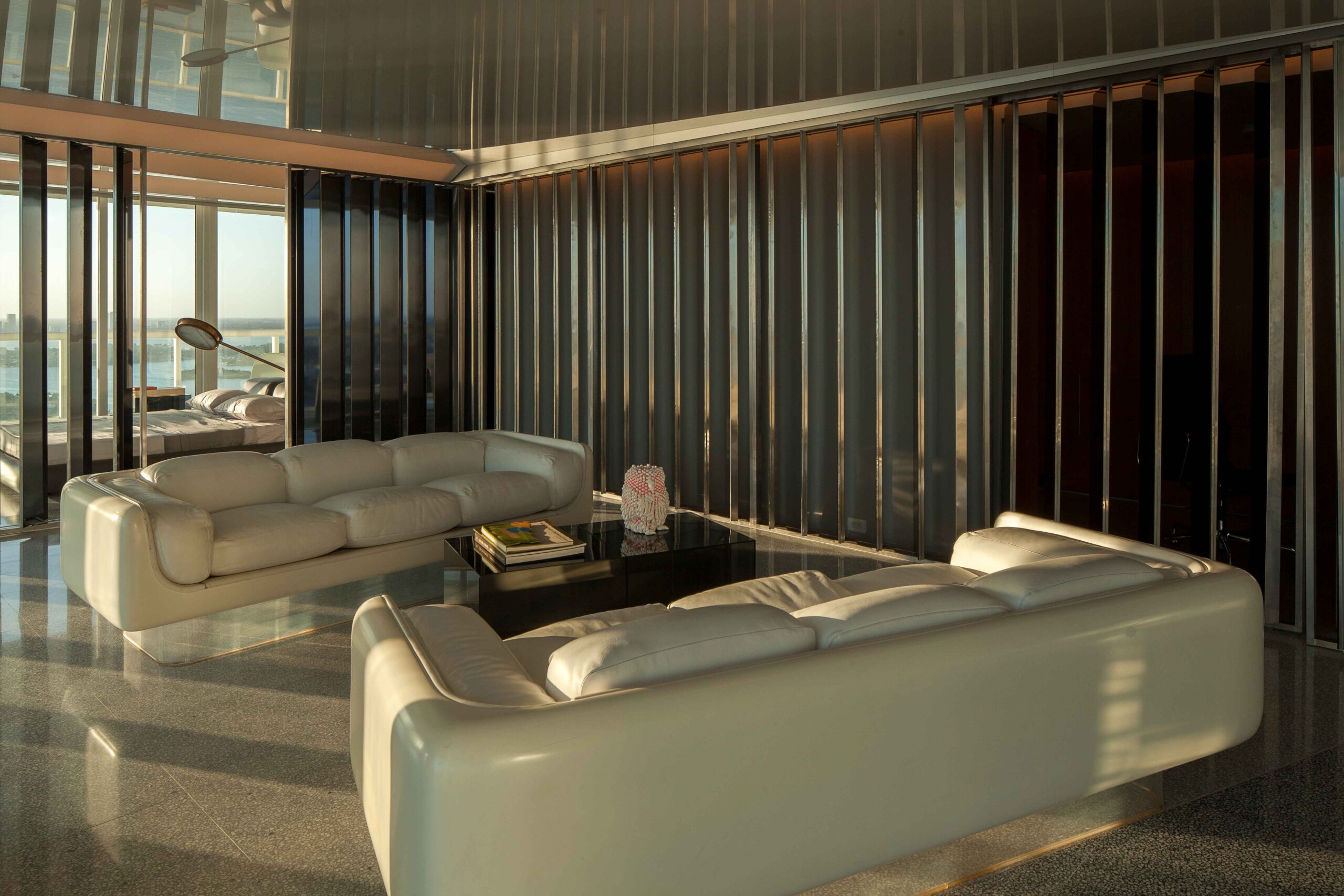 Located within South Beach, the Icon Residence subverts the typical apartment typology by introducing an architecture that dematerializes in order to open up the space to both embrace and reflect the apartment’s views and surroundings. The result is an intimate and symbiotic relationship between the interior space and the skyline, the Atlantic Ocean, and the string of islands that comprise Miami Beach and Biscayne Bay.