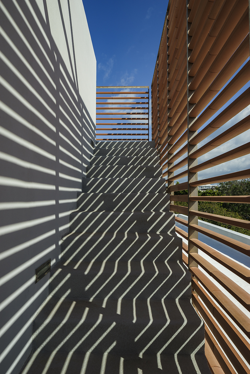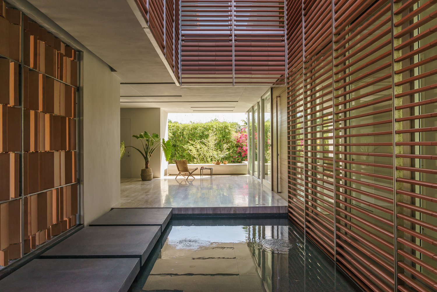 The use of materials and overall layout present a series of spatial experiences defined by light and shadow and permeable connections between interior and exterior. Implicitly interpreting the persianas, which filter light as well as mitigate heat, terracotta brick louver systems were selected in three types: a more traditional and regular horizontal pattern, pivoting vertical panels, and textural, more solid bricks.