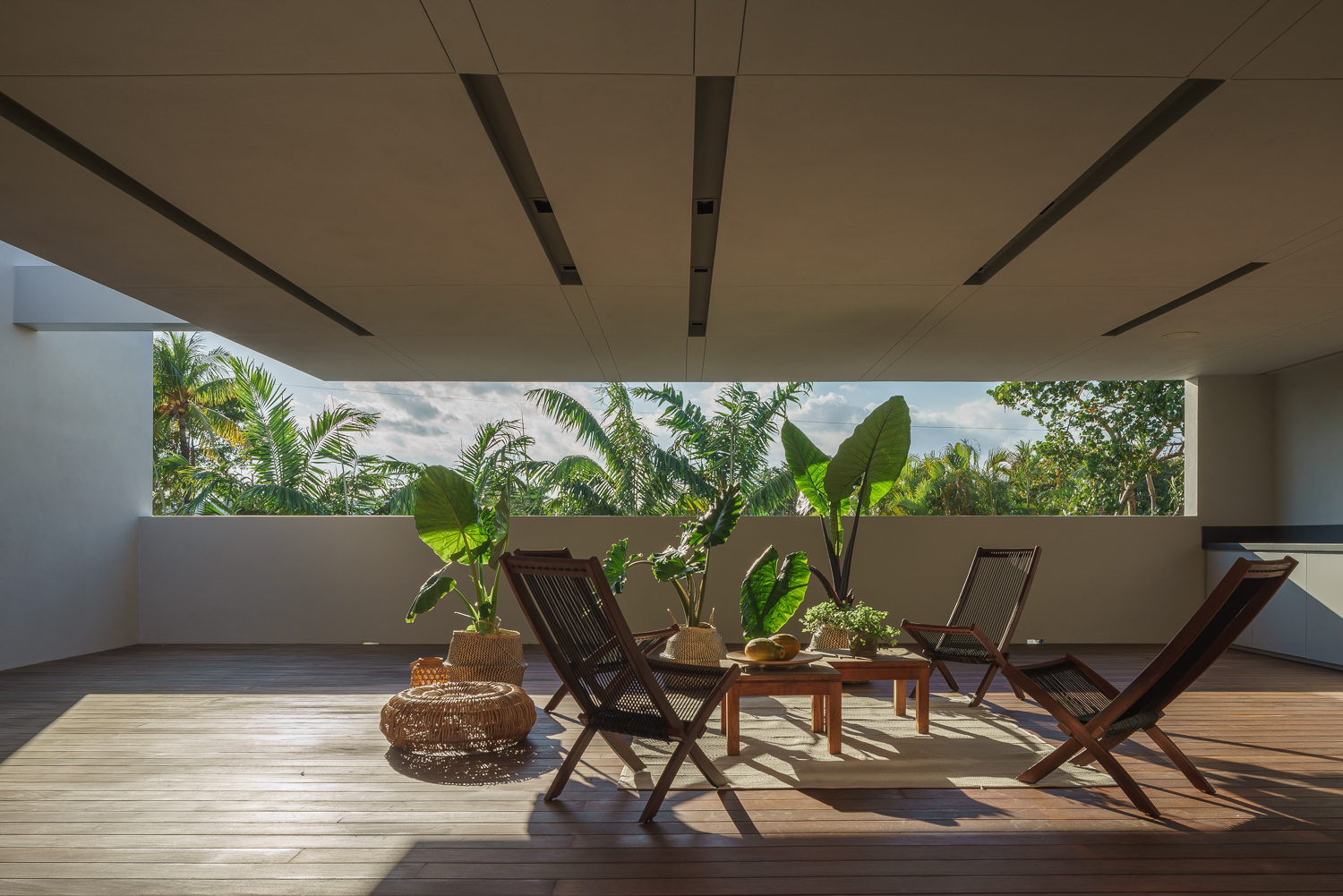 The Pacific Residence is reflective of the Latin cultural environment that surrounds it, including the client for whom it was designed. The South Florida community has many Latin American residents and the intent was to design a contemporary, comfortable house within a condition inclusive of many Mediterranean-style homes that are embedded in these cultural conditions. As a result, many architectural elements are utilized that are inherent to the Latin tradition including patios, portales (porches), and persianas (louvered screens).