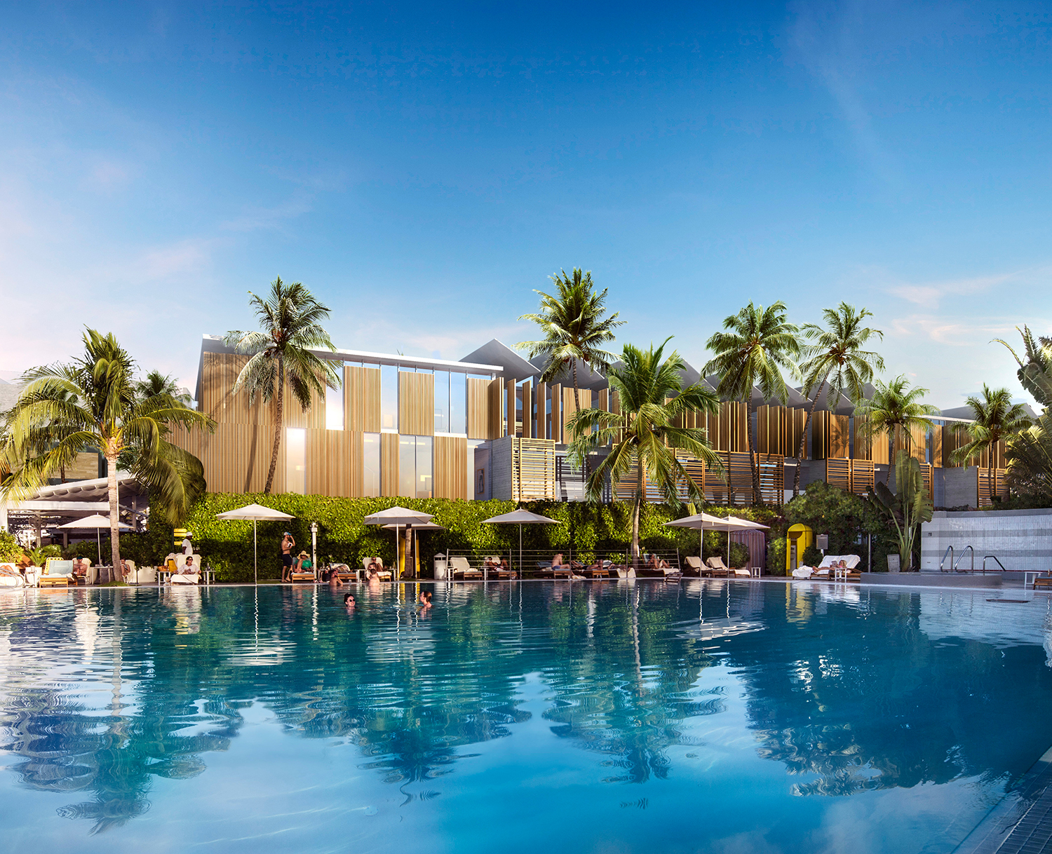 Situated on a waterfront site, The Standard Hotel is located on Belle Isle and faces Biscayne Bay. A historic example of mid-century Miami Modern (“MiMo”) architecture, it is a fashionable hotel and spa with a distinctively relaxed, bohemian quality. Addressing the reality of sea level rise while focusing on the practical need to accommodate more spacious suites and parking, RGA developed an elevated design for an integrated renovation that explores and expands upon the essential cultural and natural typologies of the site.