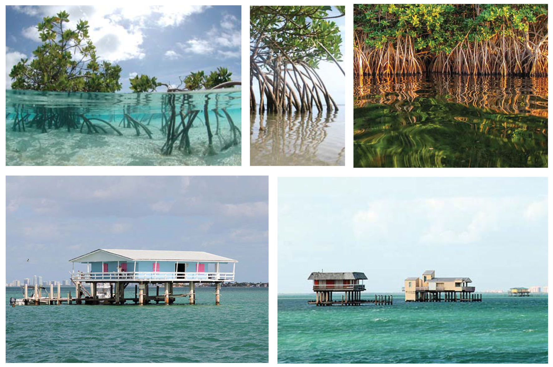 Elevating this addition, the architectural design draws on precedents situated in similar environmental conditions including elevated Native American Chickee huts in Florida, the beach huts of Playa Blanca in Cartagena, Colombia, and the floating community of Stiltsville in Biscayne Bay, in addition to elements such as mangroves, docks, piers, and pilings.