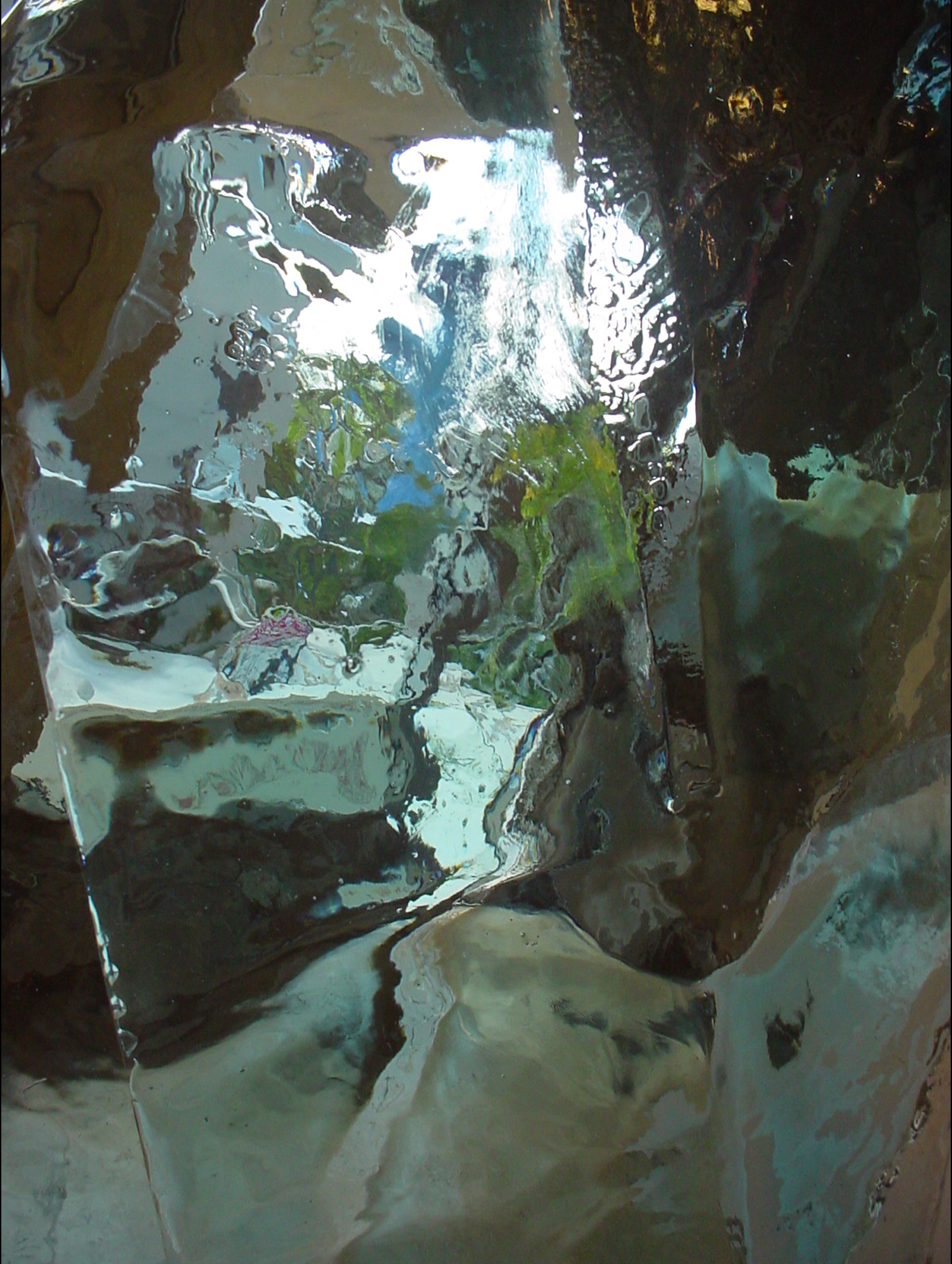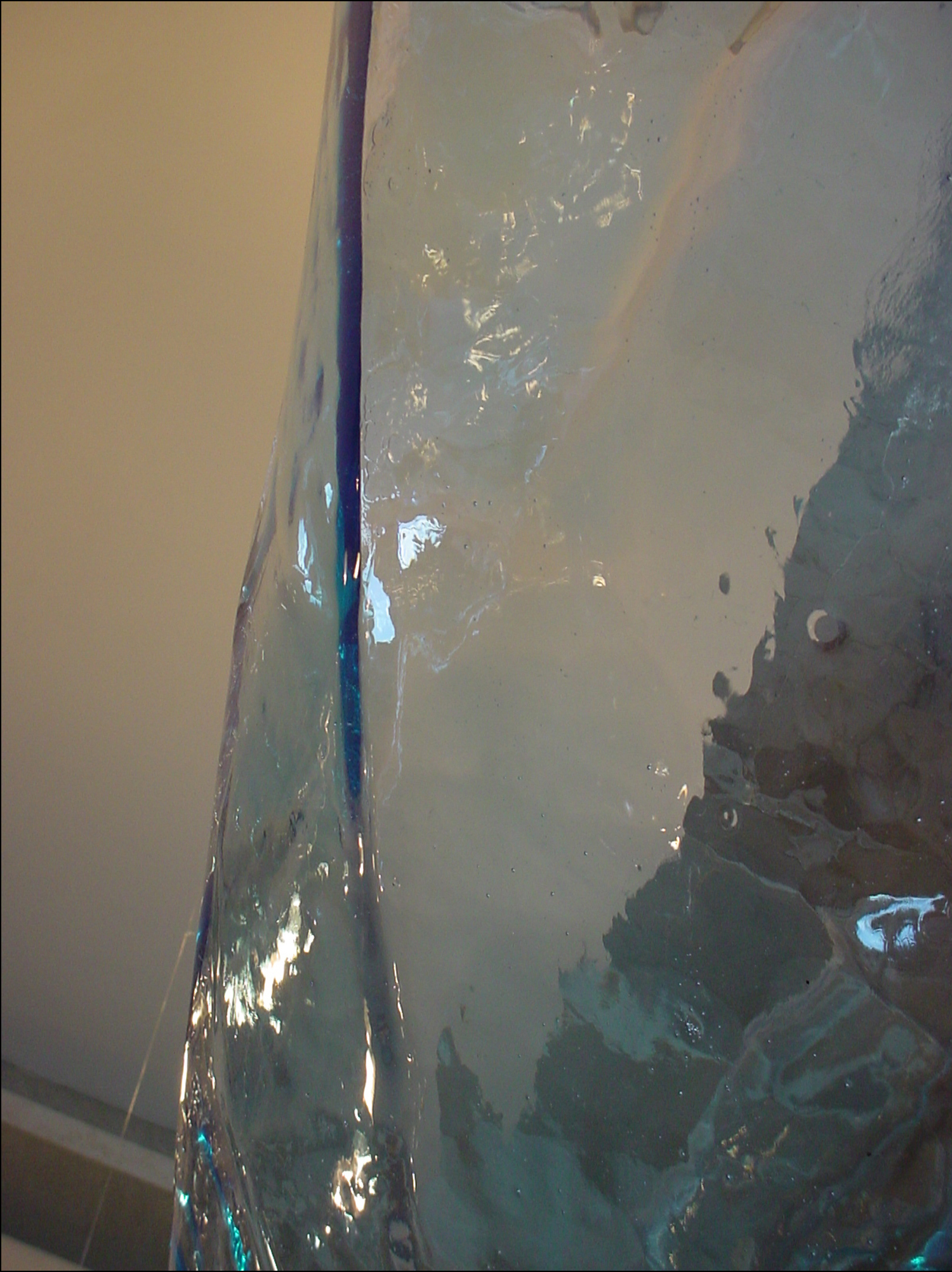 Blue pigmented epoxy resin, lead, and polypropylene are used to create an aqueous, fluid environment.