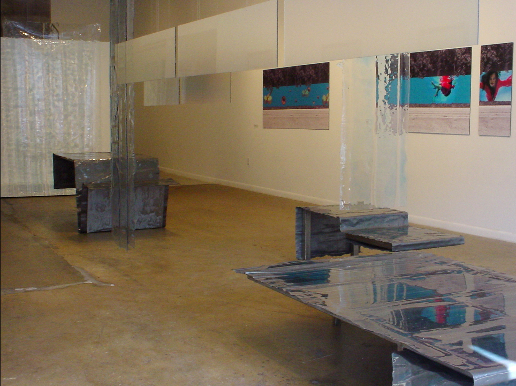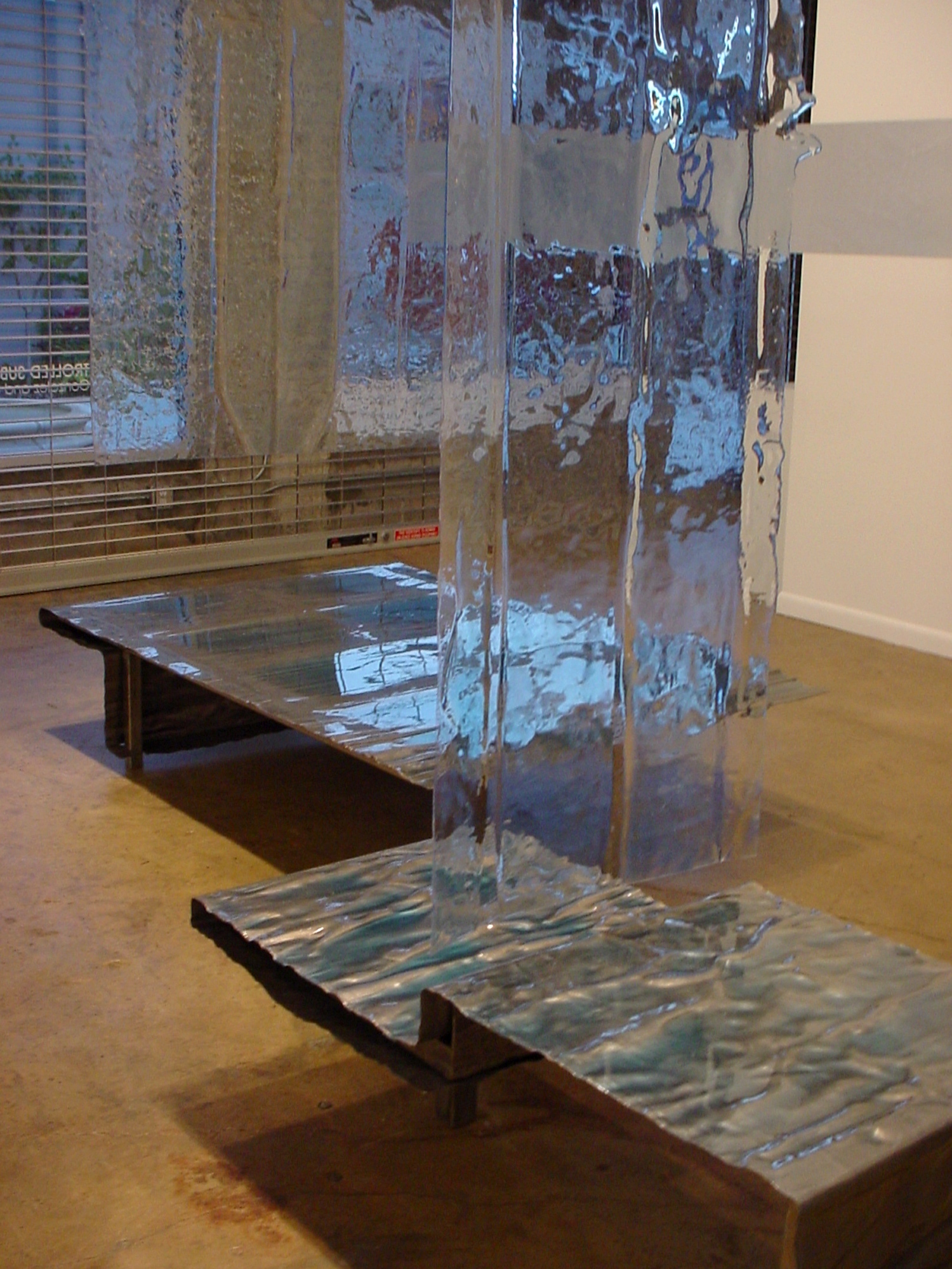 The Controlled Substance installation and Water Tables required experimentation with materials to create an atmosphere that characterized water: the thematic element of the Biscayne Boulevard proposals. Blue pigmented epoxy resin, lead, and polypropylene are used to create an aqueous, fluid environment.